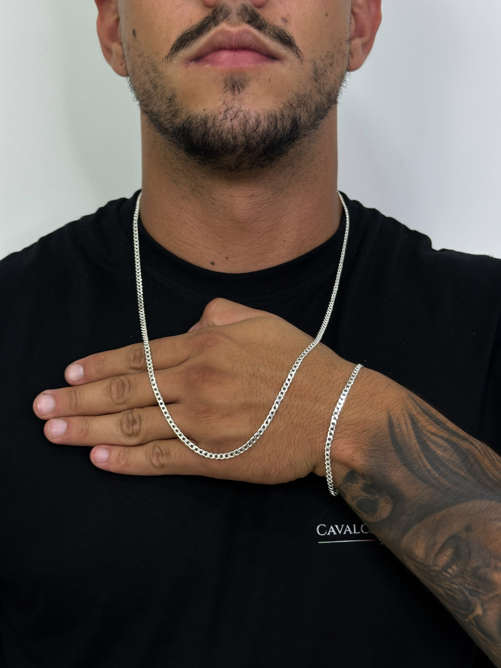 Conjunto Grumet 3mm Corrente 70CM + Pulseira 21CM - Prata 925